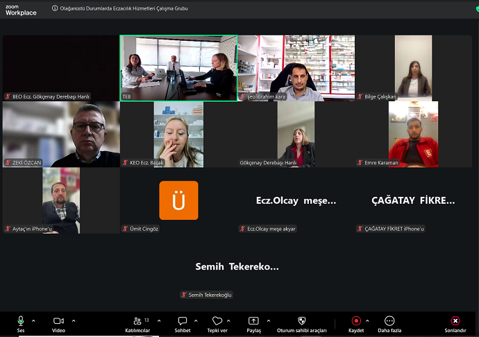 Türk Eczacıları Birliği 45. Dönem Olağanüstü Durumlarda Eczacılık Hizmetleri Çalışma Grubu, 13 Nisan 2026 tarihinde çevrim içi toplandı. Toplantı, Çalışma Grubu sorumluları Türk Eczacıları Birliği Saymanı Ecz. Tolga Mumcu Çetinkaya ve Türk Eczacıları Birliği Merkez Heyeti Üyesi Ecz. Zeki Salih Özcan’ın başkanlığında, çalışma grubu üyelerinin katılımıyla gerçekleştirildi.